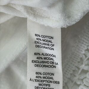 Chico's White Ruffled Short Sleeve Tee with Fringe