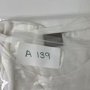 Discover the elegance of Chico's with this white t-shirt, featuring a playful ruffled design that adds a touch of flair to your wardrobe. The classic crew neckline and short sleeves make it a versatile piece for any casual outing. Crafted from quality materials, this top ensures comfort and style in equal measure.