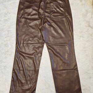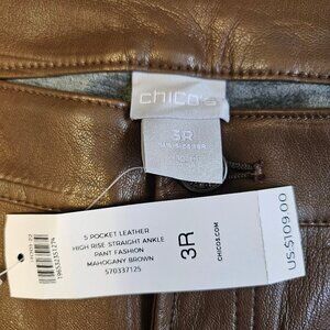 Check out this Chico's Women's Brown 5 Pockets Faux Leather High Rise Straight Legs Pants in excellent new with tag condition.