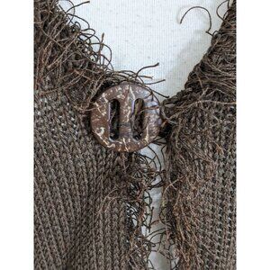 Chicos Womens Button Front Fringed Cardigan Size Medium Brown Knit Linen Blend