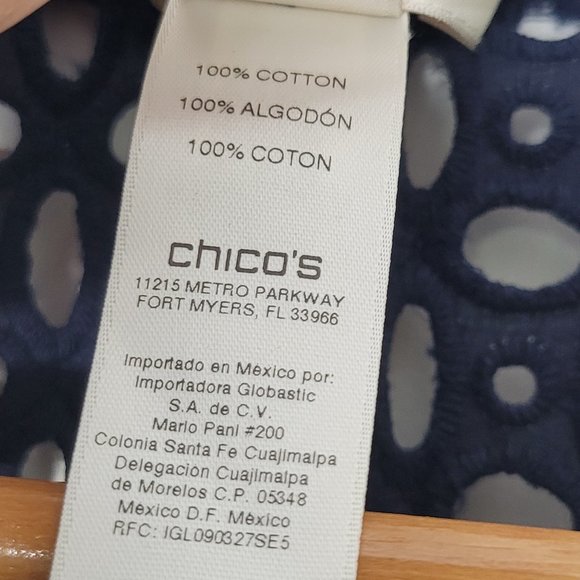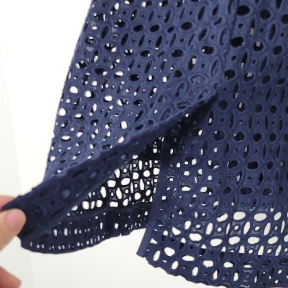 Chico's Women's Navy Blue Cotton Blend Eyelet Sleeveless Collared Vests Coverup