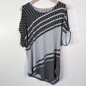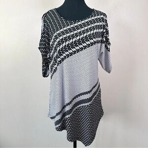 Chico's Womens Size 1 US Small Geo Short Sleeve Jersey Top