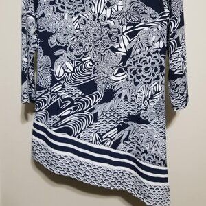 Chicos Women's Tunic Top Asymmetrical Floral Navy Casual Business Dressy