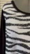 Chico’s Zebra print pullover knit top. Front panel with zebra print with sparkle and stud detail. Solid back, sleeves and side panels in ultra soft French terry. 3/4 length sleeves.