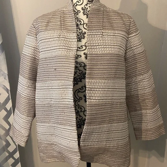 Chico’s gold and beige open front jacket