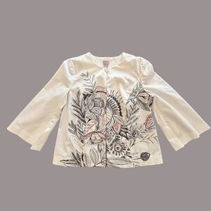 Chico's lined floral print wide 3/4 sleeve open front jacket us size 8/10