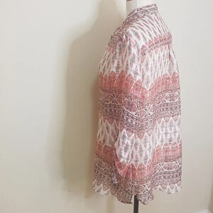 Chico's sheer 3/4 sleeve Mandarin collar Bohemian print vee tie neck top SZ 2X