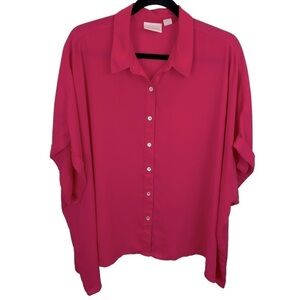 Chico's sz 3/XL Hot Pink Fuchsia Oversized Short Sleeve Button Up Blouse