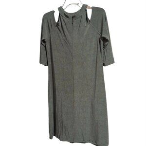 Chico"s travelers Dress in a Hunter Green 3/4 Sleeve Sheer Stretch Cold Shoulder