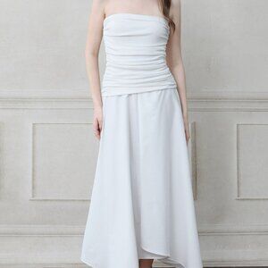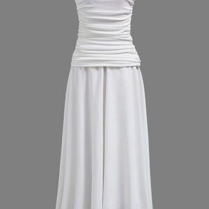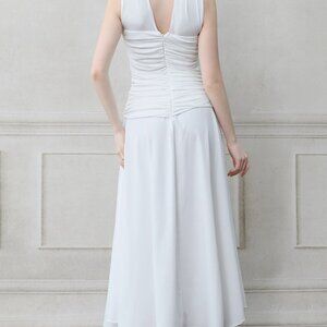 Chicwish - Halter Neck Ruched Asymmetric Maxi Dress - White - Small