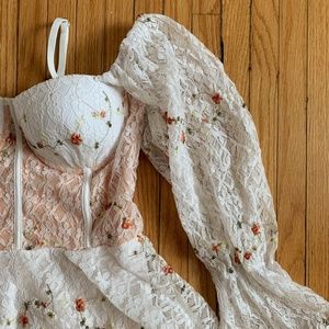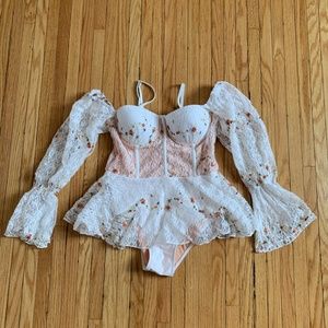 Cute Chicwish one piece lace floral swimsuit/bodysuit. Size medium but found that it fits like a small medium. Worn once.
