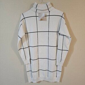 Chicwish Warm Welcome Grid Turtleneck Sweater Dress - M
