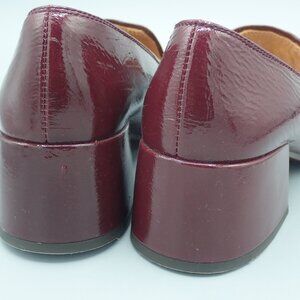 Burgundy color. Patent leather on the outside, genuine leather on the inside. Includes dust bag. Comfortable heel (5 cm high) for all-day wear.