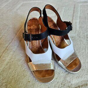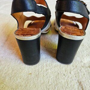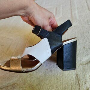 Chie Mihara Block Heel Sandals Sz 6.5/37 EUR Black White Silver