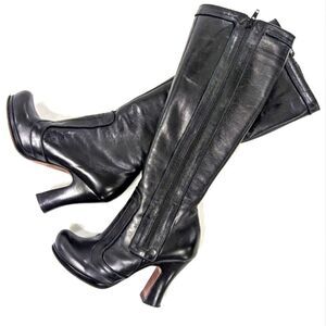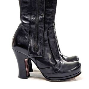 Insanely cool black leather knee high in perfect condition with only light wear to the sole.