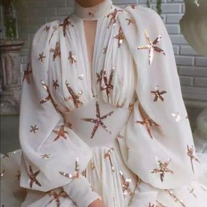 NWOT white chiffon dresses in multiple colours, long cuffed sleeves, front slit, fit and flare, great for cocktail and prom gown, Brand new White Chiffon Dress/Gown with Bead Work