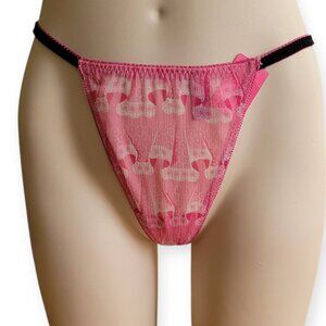 Betsey Johnson two-piece set featuring a pink chiffon nightgown and matching thong panties. Perfect for a dollcore-inspired, coquette style.