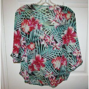 Chiffon Tropical Floral Peek a Boo Sleeve Top Blouse