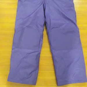 Purple snowpants for young child. Strapless.