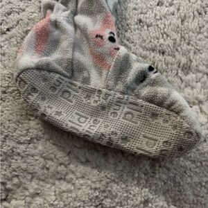 This comfy Carter's fleece one-piece zip sleeper, featuring a pink and yellow sloth design. This full-length garment ensures a cozy fit for lounging or sleeping. The footed design features grips on the bottom of the feet . Size 3T. Great condition. Smoke and pet free home.