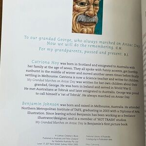 Explore the touching story of a grandad's march on ANZAC Day with this beautifully illustrated children's book. Perfect for learning and bonding time.