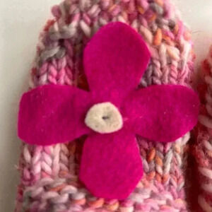 Children’s Handmade Baby Slippers with felt flowers and Matching Heart Barrettes
