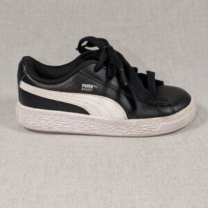 Step into comfort and style with the PUMA Basket Classic sneakers, designed for the active child. These black sneakers feature a timeless round toe and a sleek lace-up closure, ensuring a snug fit for any activity, from basketball to walking and schoolwear. The versatile low top silhouette pairs well with any casual outfit, making it a must-have in your child's footwear collection. Crafted with attention to detail, these sneakers boast a flat heel for all-day wearability and are adorned with the iconic PUMA logo for a touch of brand prestige. The durable construction and standard shoe width accommodate growing feet, while the size 9 UK / 10 US / 27 EU ensure a great fit for unisex kids. The PUMA Basket sneakers are a perfect blend of style and function for your little one's everyday adventures.