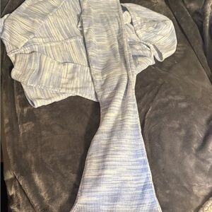 Champion hoodie and pants set with blue and white stripes. Comfortable and stylish.