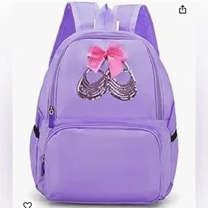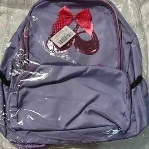 Purple/lilac small backpack suitable for dance equipment or other uses for children. New with original packaging and tag/sticker.
