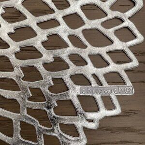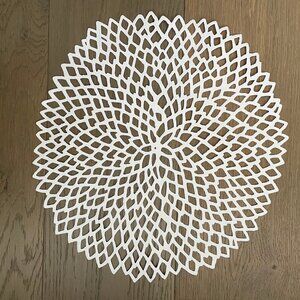 Chilewich Set of 6 Dahlia Pressed Vinyl Metallic Finished Round Placemat in Silver NWOT