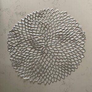 Chilewich Set of 6 Dahlia Pressed Vinyl Metallic Finished Round Placemat in Silver NWOT