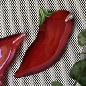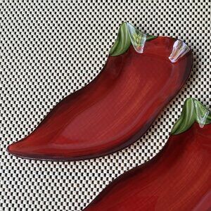 Description 🌶 Two glass bowls in the shape of peppers. Bright red color with green tip.