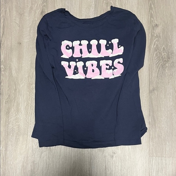 This stylish kids shirt features a fun 'Chill Vibes' design in pink on a navy blue background. Perfect for casual wear, it combines comfort with a playful look.