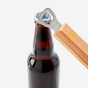 BNI-Give the gift of BBQ with this set of 1 Cotton Tea Towel and 1 Stainless Steel & Oak Wood Spatula with BBQ motif Cut-outs, and opener on the end.