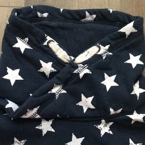 Long-sleeved sweatshirt with a printed design. Chimney collar with wrapover front, kangaroo pocket, and ribbing at cuffs and hem. Soft, brushed inside.
