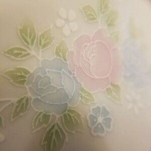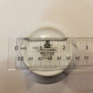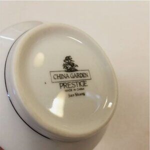 A very nice piece of white porcelain with delicate pink, blue, green and white floral accents. Pieces of this collection have various words following the China Garden logo: "International," "Jian Shiang," and "Gio Guang"