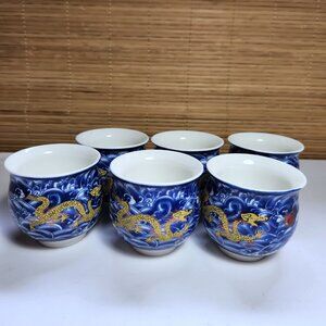 Chinese Golden Dragon Porcelain Teacups Set of 6 Double Wall Jingzhen