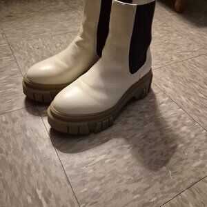 White lug sole ankle boots by Chinese Laundry