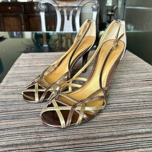 Chinese Laundry Strappy Metallic Bronze and Gold Leather Heels Size 10