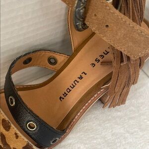 Chinese Laundry Tan and Black Heels with Chunky Heel and Ankle Strap