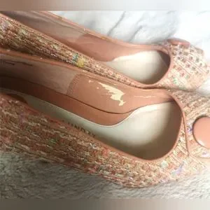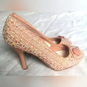 Beautifull Chinese Laundry open toes heels. Size 7M. Scratch on heels and little piece of Tissu ripped inside (look on pictures). Otherwise in good condition.
