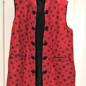Chinese Long Brocade Vest Handmade Knot Buttons Luxurious Fabric Size XL
