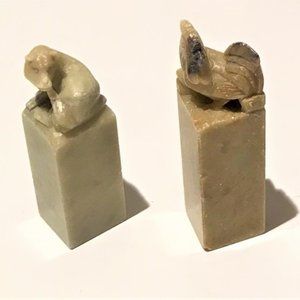 Chinese Natural Stone Seal Stamp Hand Carved H2.75" Set of 4