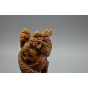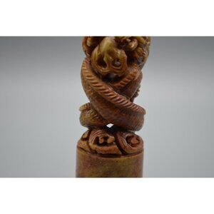 Chinese Shoushan Stone Statue Seal Stamp 4 3/4" G Shore 2-Headed Serpent Snake