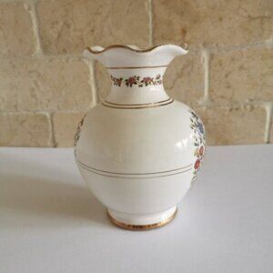 Chinoiserie Small Vase CHIPPED Colorful Peacocks Greece 24K Gold Ruffled Edge