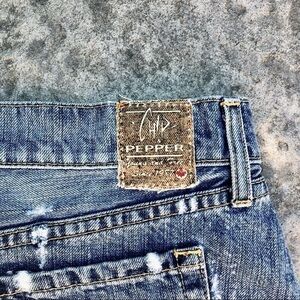 Manufactured Distressed MINI DENIM jean skirt, super cool size 27 by chip and pepper