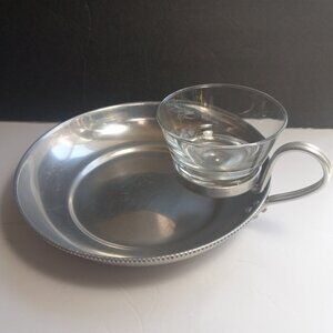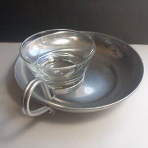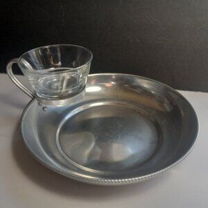 Chip and Dip Dish Beaded Rim Aluminium with Glass Bowl Serving Tray B W Buenilum