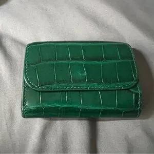 Preloved authentic emerald green crocodile leather wallet with hold hardware. With sign of use but glazings are all intact.