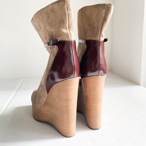 Chloé Crosta Light Beige Suede Wedge Heel Booties 37