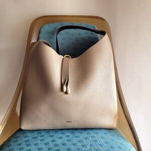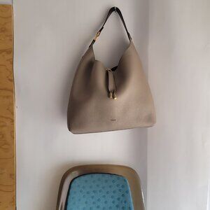 Beautiful minimalist soft hobo bag with embossed hardware, tassel closure and roomy, suede main compartment with interior zipper pocket.